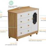 Também é um material sustentável, produzido a partir de madeira reflorestada, contribuindo para a preservação do meio ambiente. Ou seja, nosso móveis oferecem segurança para o bebê, praticidade para os pais e um visual encantador para o quarto. Uma escolha inteligente, bonita e responsável.