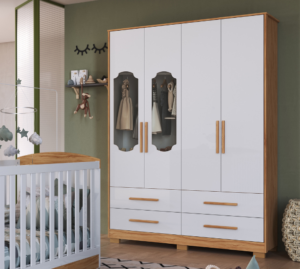 Todos os nossos móveis infantis são fabricados 100% em MDF, um material de alta qualidade que garante maior resistência, estabilidade e acabamento superior. Essa escolha é ideal para o uso diário no quartinho do bebê, pois o MDF não lasca com facilidade, não empena e suporta melhor o uso contínuo, seja ao abrir e fechar gavetas ou apoiar objetos.