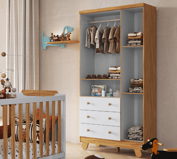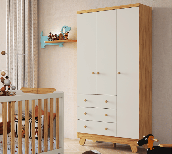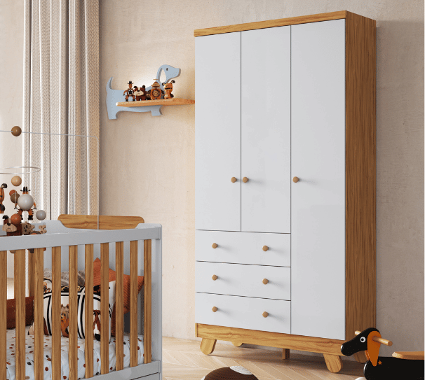 Todos os nossos móveis infantis são fabricados 100% em MDF, um material de alta qualidade que garante maior resistência, estabilidade e acabamento superior. Essa escolha é ideal para o uso diário no quartinho do bebê, pois o MDF não lasca com facilidade, não empena e suporta melhor o uso contínuo, seja ao abrir e fechar gavetas ou apoiar objetos.