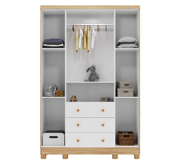 Todos os nossos móveis infantis são fabricados 100% em MDF, um material de alta qualidade que garante maior resistência, estabilidade e acabamento superior. Essa escolha é ideal para o uso diário no quartinho do bebê, pois o MDF não lasca com facilidade, não empena e suporta melhor o uso contínuo, seja ao abrir e fechar gavetas ou apoiar objetos.