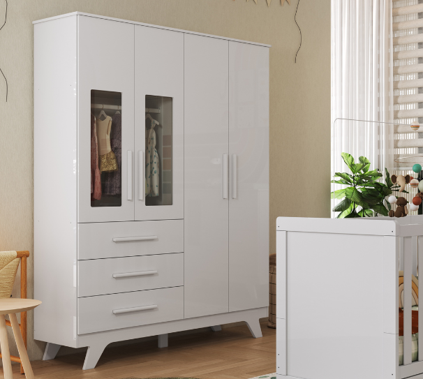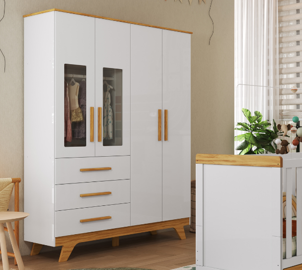 Todos os nossos móveis infantis são fabricados 100% em MDF, um material de alta qualidade que garante maior resistência, estabilidade e acabamento superior. Essa escolha é ideal para o uso diário no quartinho do bebê, pois o MDF não lasca com facilidade, não empena e suporta melhor o uso contínuo, seja ao abrir e fechar gavetas ou apoiar objetos.