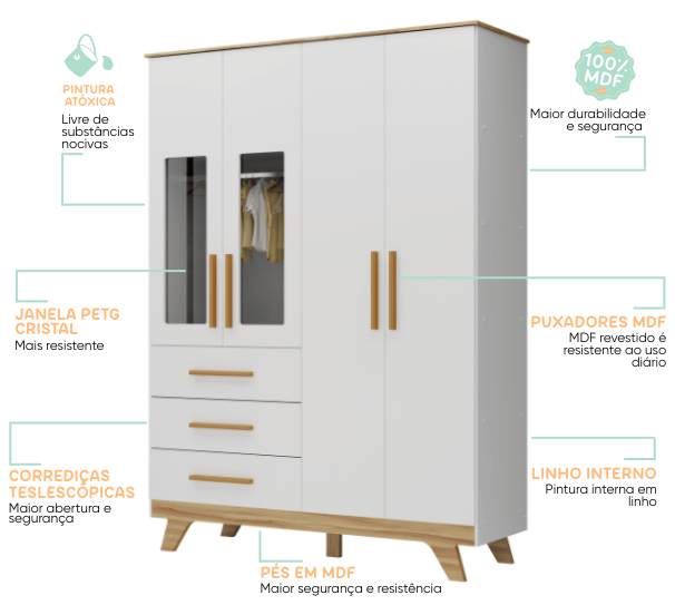 Também é um material sustentável, produzido a partir de madeira reflorestada, contribuindo para a preservação do meio ambiente. Ou seja, nosso móveis oferecem segurança para o bebê, praticidade para os pais e um visual encantador para o quarto. Uma escolha inteligente, bonita e responsável.