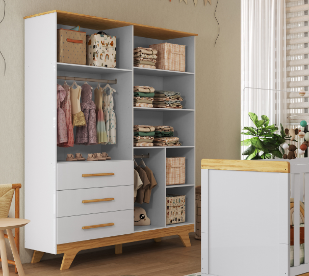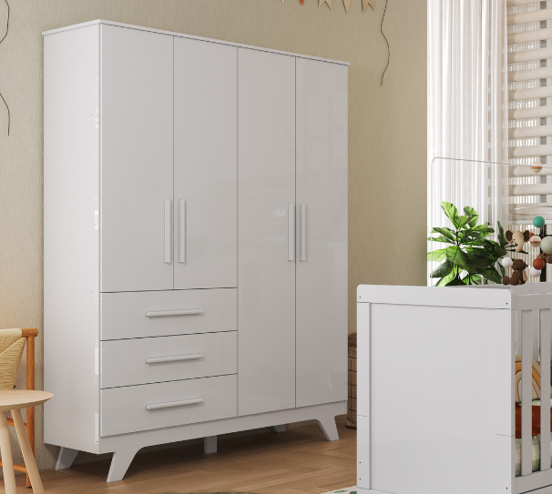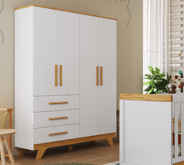 Todos os nossos móveis infantis são fabricados 100% em MDF, um material de alta qualidade que garante maior resistência, estabilidade e acabamento superior. Essa escolha é ideal para o uso diário no quartinho do bebê, pois o MDF não lasca com facilidade, não empena e suporta melhor o uso contínuo, seja ao abrir e fechar gavetas ou apoiar objetos.