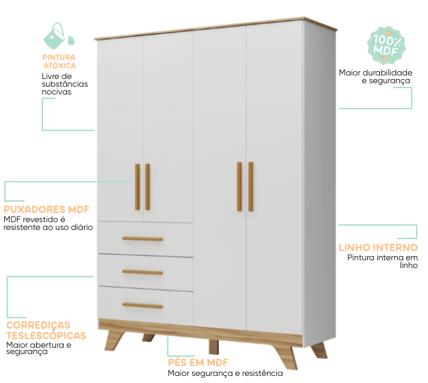 Também é um material sustentável, produzido a partir de madeira reflorestada, contribuindo para a preservação do meio ambiente. Ou seja, nosso móveis oferecem segurança para o bebê, praticidade para os pais e um visual encantador para o quarto. Uma escolha inteligente, bonita e responsável.