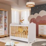 A cômoda e o armário oferecem organização prática para o dia a dia, com corrediças telescópicas nas gavetas e espaço de sobra para tudo o que seu bebê precisa.